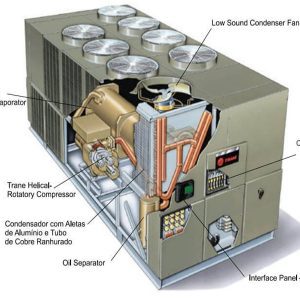 Chiller: Là máy sản xuất nước lạnh để cung cấp tới tải của công trình. Thường được lắp đặt cho nhà máy hoặc trung tâm thương mại.